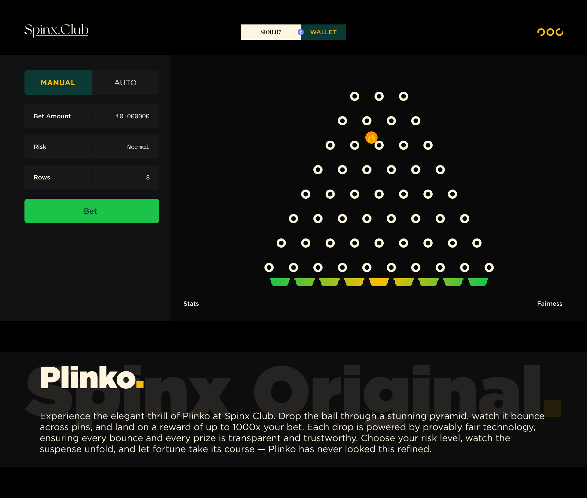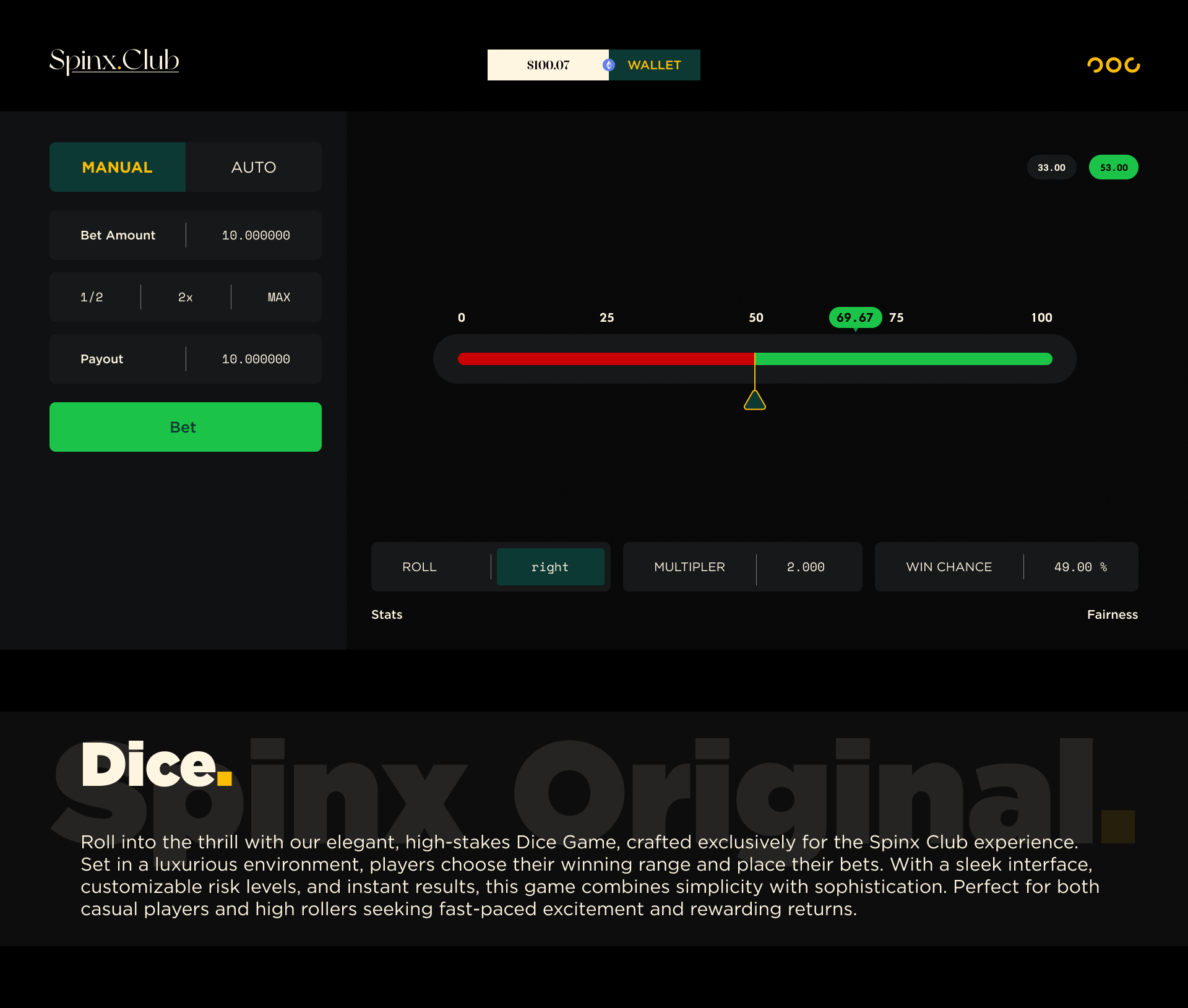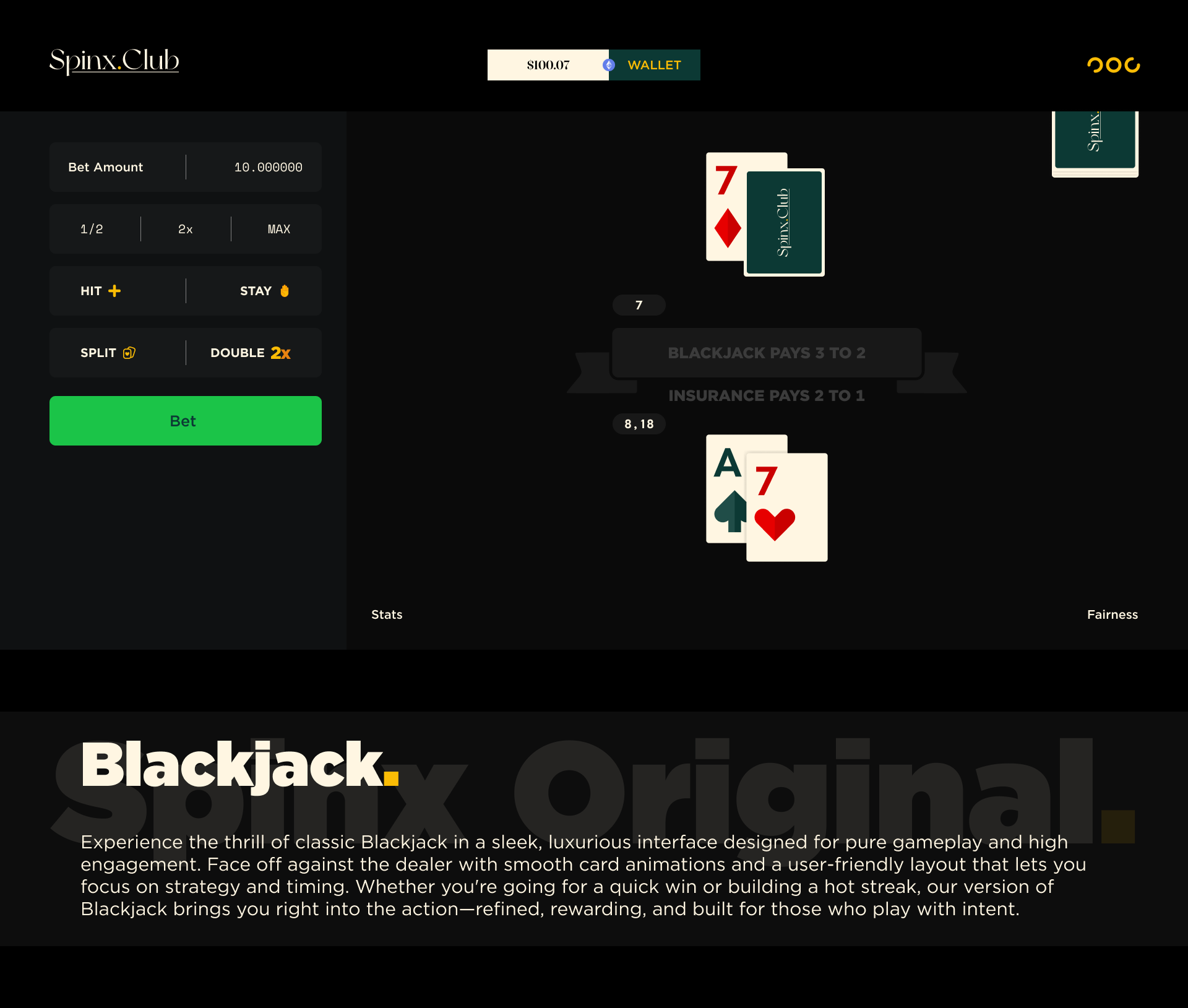 Spinx Club is a luxury crypto-based iGaming platform offering exclusive, provably fair gaming experiences. Designed for high-rollers, it features in-house games with low house edges and loss-based rewards. With VIP perks, rakeback, and competitive bonuses, Spinx Club caters to digital-native players looking for a premium, seamless gambling experience. The platform allows crypto deposits and withdrawals, aiming to create an unmatched environment in the global online gaming market.